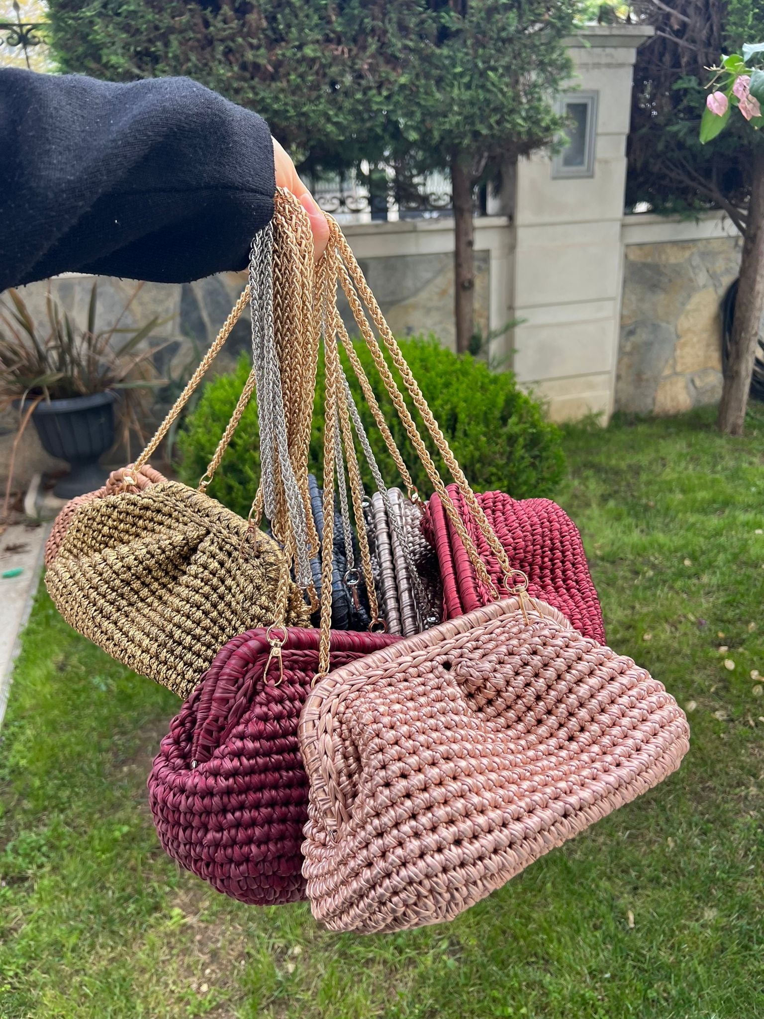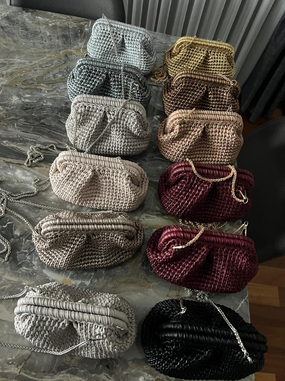 Handmade metallic clutch with chain - medium size
